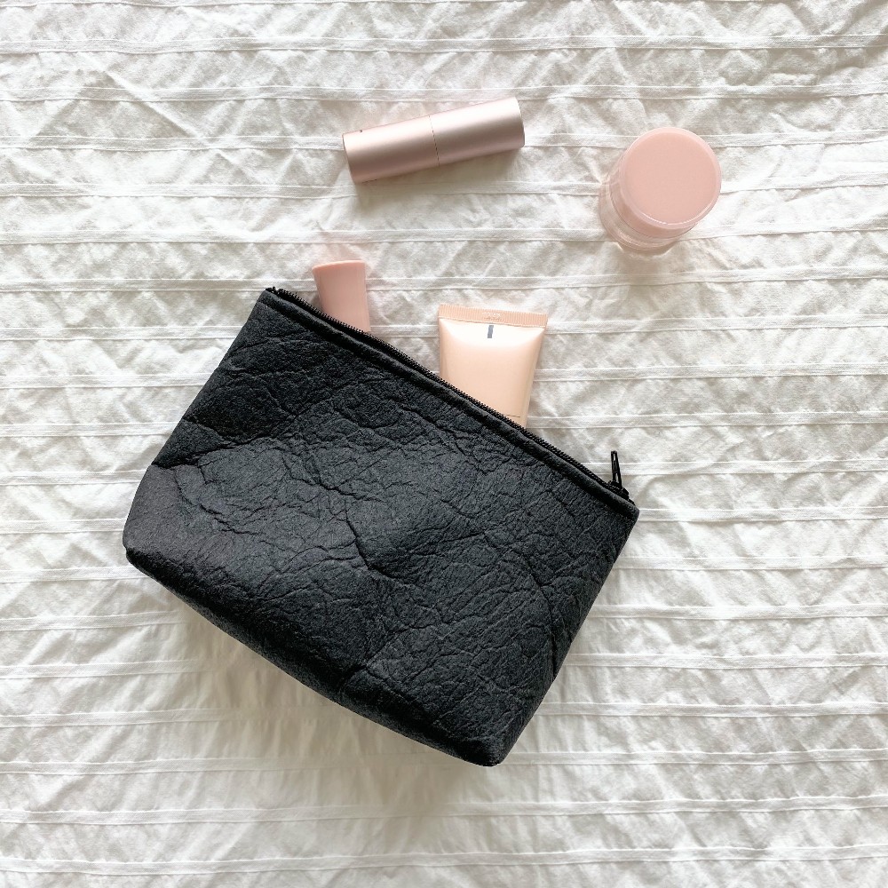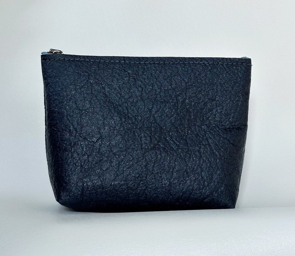 Ideal for cosmetics, pencils, travel essentials. Vegan, plant-based leather alternative made from pineapple leaf fibers. Unlined, felted interior. Durable metal tooth zipper.
