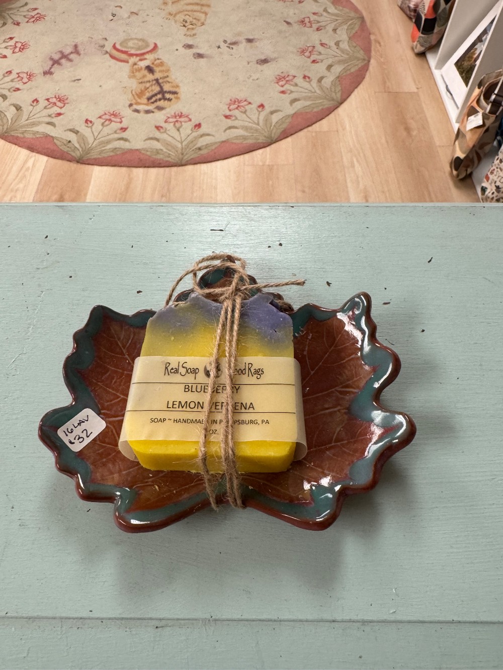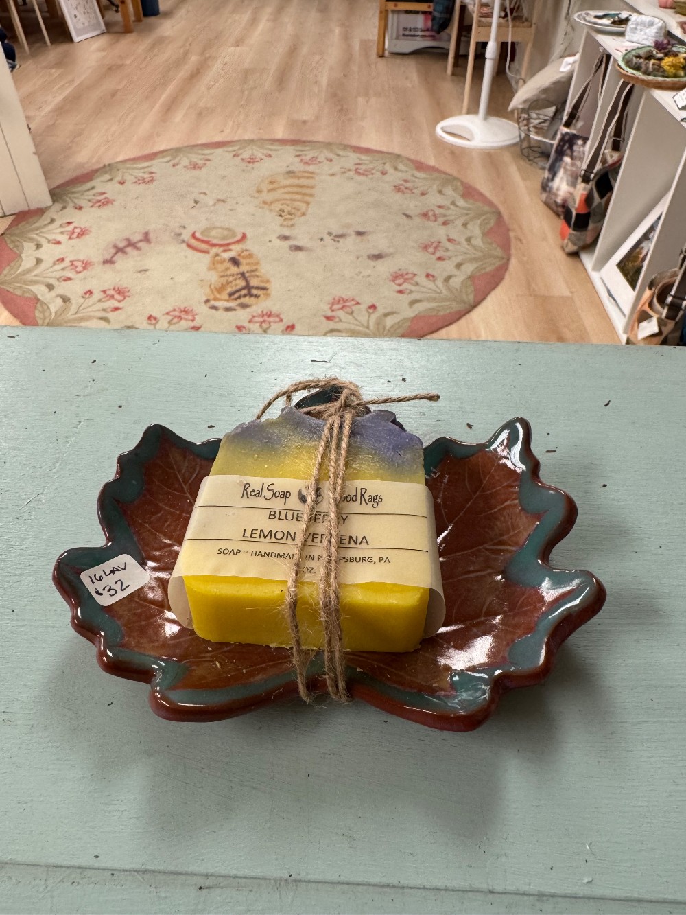 Lemon verbena soap on Clay leaf tray